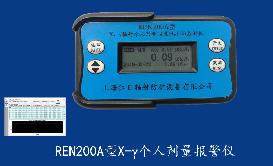 REN200型X、γ個人劑量報警儀(又叫X、γ輻射個人劑量當量HP(10)監測儀)內置高靈敏度蓋格計數管為探測器,主要用來監測各種放射性工作場所的X、γ以及硬β射線的輻射,具有響應快,測量范圍寬的特點。能顯示工作場所的劑量當量率和累積劑量,更換電池時,日期及累積數據能永久保存。可選配RenRiPersonal個人劑量管理軟件,該軟件可存儲多個人的歷史數據,能記錄日累積、月累積、年累積、輻照時長、計算平均劑量率、扣除或不扣除本底輻射,且以文字和圖譜的方式展現數據。廣泛應用于核電站、加速器、鋼鐵、化工、同位素應用、醫院、工業X、γ無損探傷、放射醫療、鈷源治療、γ輻照、放射性實驗室、核設施周圍環境監測 REN400型多功能輻射檢測儀是以內置高靈敏度蓋格計數管為探測器,外接不同類型的探頭來實現對低劑量χ、γ射線,高劑量χ、γ射線,α、β射線和中子射線的檢測。作為多功能輻射巡測儀,能顯示工作場所的輻射值,自動連續測量和記錄280萬條輻射劑量率數據,更換電池時,日歷、時間及檢測數據能永久保存。工作人員可以任意設定報警值,超閾值后自動發出聲音、震動和光報警。多功能輻射檢測儀適用于核設施、核技術應用單位、廢舊鋼鐵、防化部隊、 加速器、同位素應用、工業X、γ無損探傷、放射醫療、鈷源治療、γ輻照、放射性實驗室的輻射場調查及事故應急輻射測量&